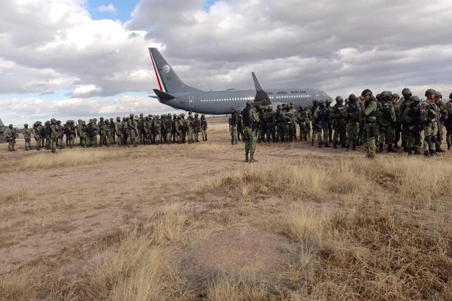 Los 200 efectivos castrenses arribaron vía aérea al Aeropuerto Internacional de Cd. Juárez, Chih., en una aeronave Boeing 737/800 perteneciente a la Fuerza Aérea Mexicana para sumarse a los esfuerzos que realizan 516 elementos del Ejército Mexicano y 393 de la Guardia Nacional en coordinación con las autoridades locales de los tres órdenes de gobierno.