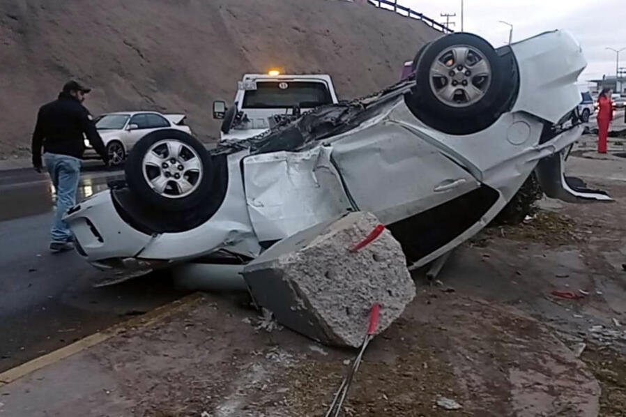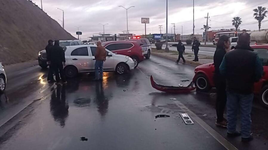 Chihuahua, Chih.- Un fuerte choque se registró en el Periférico de la Juventud provocado por las lluvias que se hicieron presentes este viernes en la ciudad