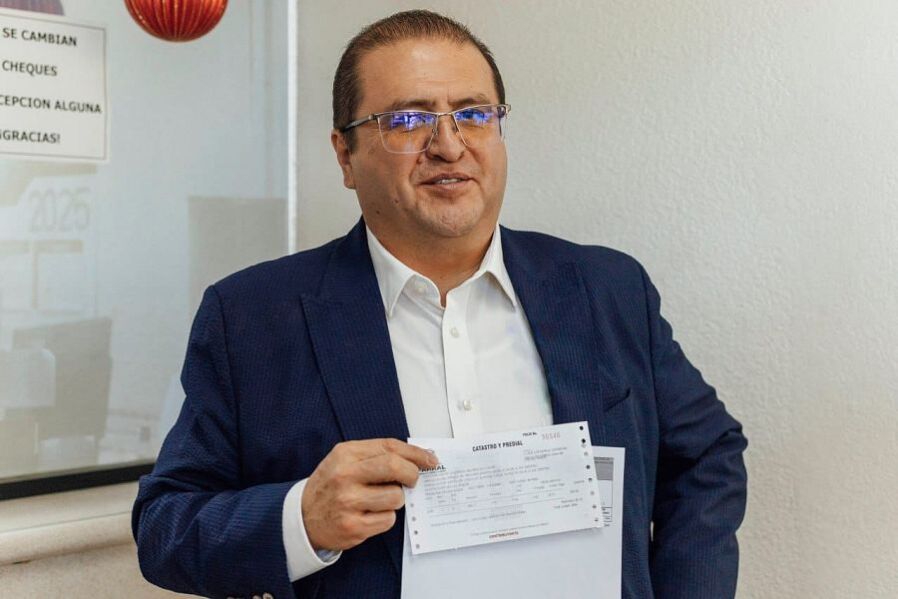 Parral, Chih.- Desde las primeras horas del día, el presidente municipal de Hidalgo del Parral, Salvador Calderón, acudió a realizar el pago puntual del impuesto predial, dando muestra de congruencia y responsabilidad cívica al cumplir, como cualquier contribuyente, con esta obligación municipal.