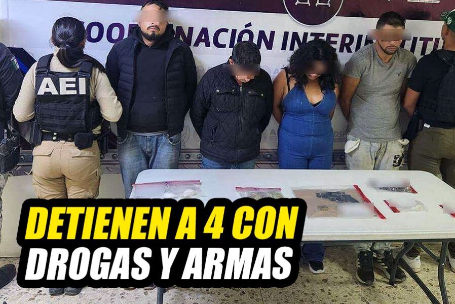 Chihuahua, Chih.- La Unidad Especializada en Investigación de Delitos de Narcomenudeo de la Fiscalía de Distrito Zona Centro, cateó un domicilio en la colonia Nombre de Dios, acción efectuada ayer miércoles, en la que se detuvo a cuatro personas en posesión de narcóticos y armas de fuego.