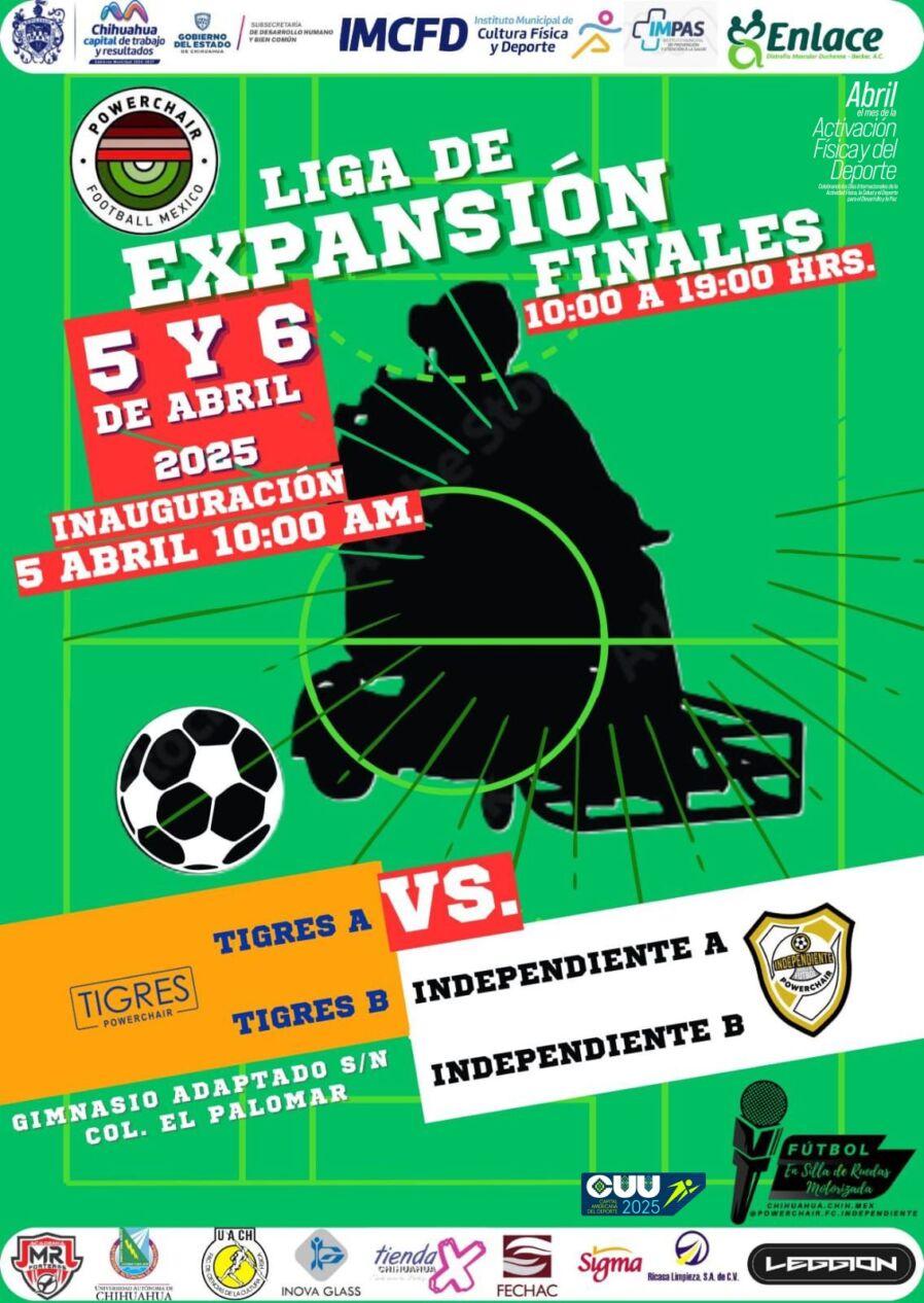 Chihuahua, Chih.- Disputarán la final de la Liga de Expansión de Powerchair Football que se realizarán este fin de semana los días 5 y 6 de abril a las 10:00 a 19:00 hrs en el Gimnasio de Deporte Adaptado.