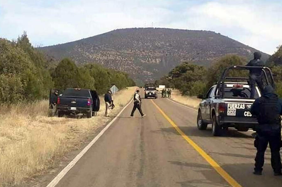 Además, a unos tres kilómetros de este lugar localizaron una camioneta marca Chevrolet línea Express color blanco modelo 2006, que presentaba perforaciones ocasionadas al parecer por impactos de proyectil de arma de fuego. En ese punto se aseguraron casquillos de diversos calibres y ubicaron restos hemáticos.