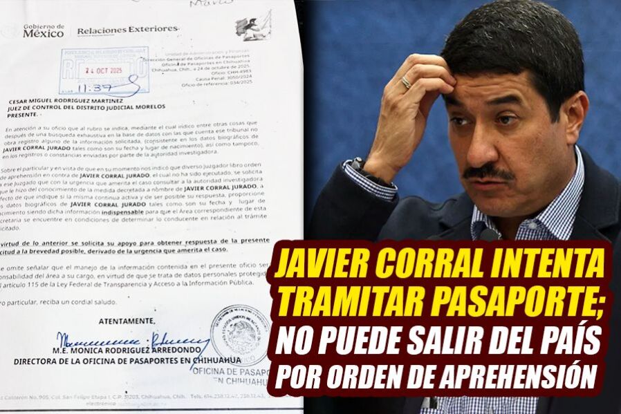 Chihuahua, Chih.– El exgobernador de Chihuahua y actual senador de Morena, Javier Corral Jurado, enfrenta restricciones judiciales que le impiden salir del país, de acuerdo con un oficio de la Secretaría de Relaciones Exteriores (SRE) fechado el 24 de octubre de 2025, dirigido al juez César Miguel Rodríguez Martínez, del Distrito Judicial Morelos. El documento, … Sigue leyendo Javier Corral intenta tramitar pasaporte; no puede salir del país por orden de aprehensión