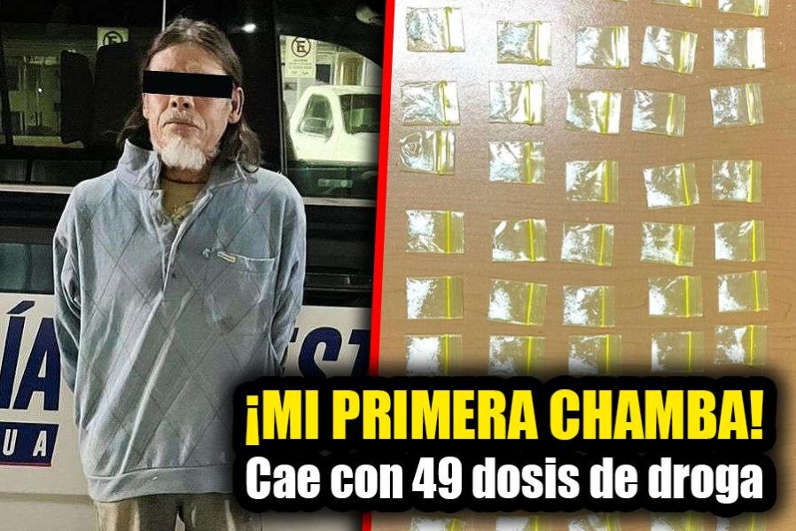 Chihuahua, Chih.- Un operativo de seguridad desplegado por elementos de la Policía del Estado en calles de la colonia Villa Juárez, en la ciudad de Chihuahua, dio como resultado la detención de Germán T.G. bajo el supuesto de delitos contra la salud, así como el aseguramiento de 49 unidades de droga.