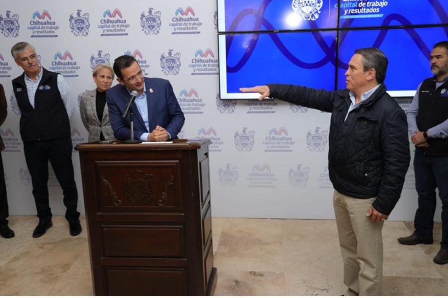 Chihuahua, Chih.- La mañana de este lunes 31 de octubre, el alcalde Marco Bonilla, tomó protesta a José Luis De Lamadrid Tellez, como Director de Servicios Públicos Municipales, quien hasta el pasado 28 de octubre, ocupaba la Subdirección de Ingresos de Tesorería Municipal.
