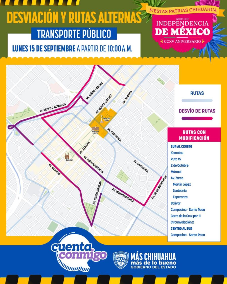 Se invita a la ciudadanía a tomar sus precauciones y hacer uso del Bowí para acudir a la Plaza del Ángel y disfrutar de las fiestas patrias, que serán encabezadas por la gobernadora Maru Campos.