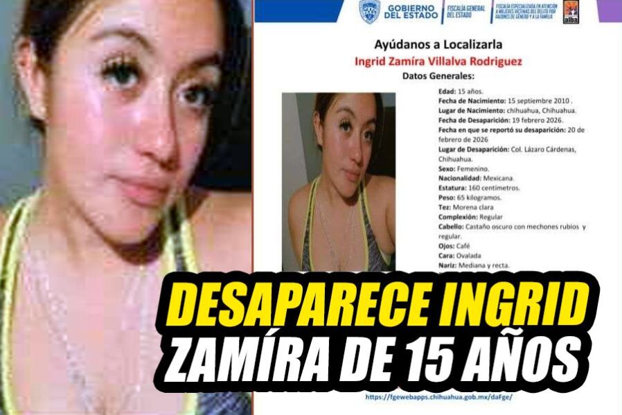 CHIHUAHUA, Chih.– Familiares y autoridades pidieron la colaboración de la ciudadanía para localizar a Ingrid Zamíra Villalva Rodríguez, de 15 años, reportada como desaparecida en la...