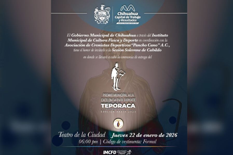 Chihuahua, Chih.- El Premio Teporaca, máximo reconocimiento al deporte en el municipio de Chihuahua, celebrará su edición número 39 con una ceremonia especial que reunirá a lo mejor...