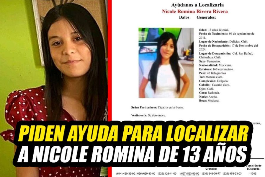 Chihuahua, Chih.– La Fiscalía General del Estado solicita apoyo de la ciudadanía para localizar a Nicole Romina Rivera Rivera, de 13 años, quien desapareció el pasado 17 de noviembre tras salir de su hogar en la colonia San Rafael, en Chihuahua Capital.