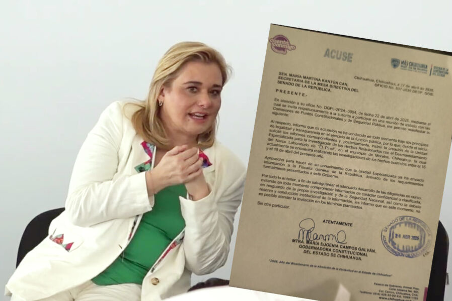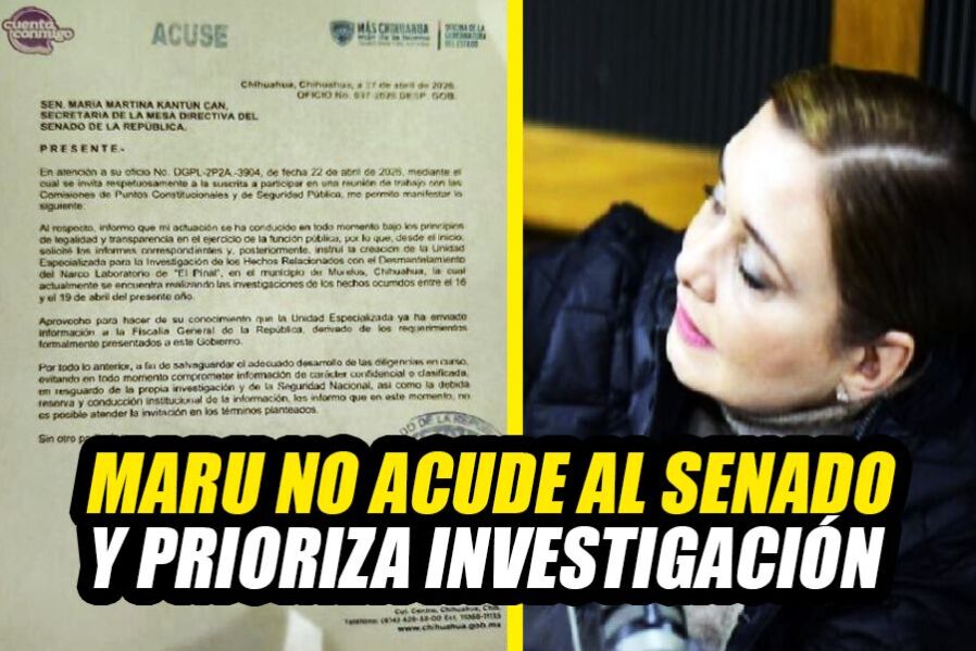 Chihuahua, Chih.- La gobernadora María Eugenia Campos Galván declinó participar en reunión de trabajo en el Senado de la República para no comprometer las investigaciones en curso. La decisión fue notificada mediante oficio dirigido a la senadora María Martina Kantún Can, secretaria de la Mesa Directiva del Senado.