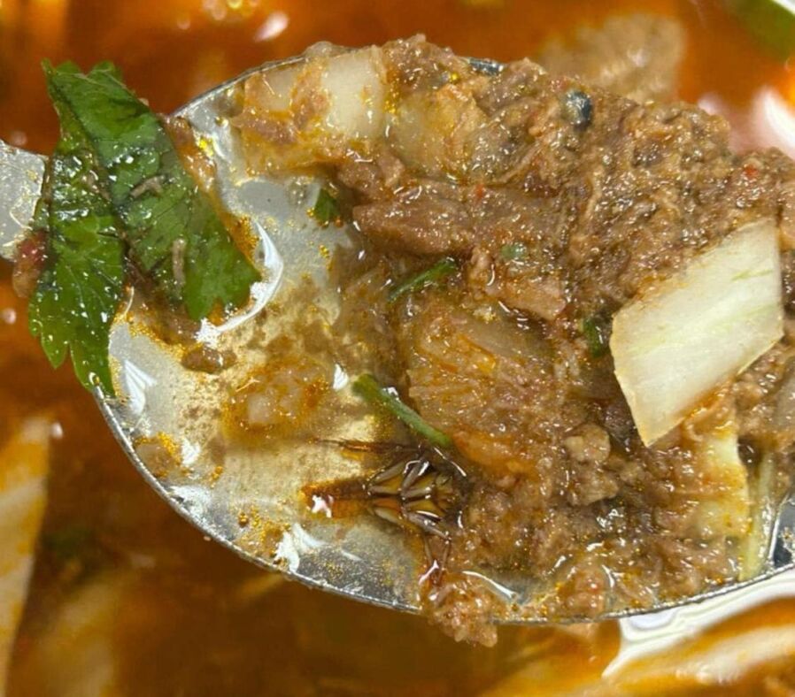 En esta ocasión, uno de los trabajadores del turno 422 descubrió una cabeza de cucaracha en un platillo de birria de res que estaba a punto de consumir.