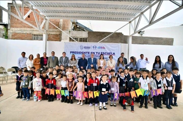 Hidalgo del Parral, Chih.- En un acto que reafirma su respaldo al sector educativo, el alcalde Salvador Calderón presidió el saludo cívico en la escuela Agustín Melgar,...
