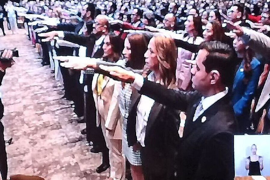 En su mensaje, la nueva presidenta reconoció el papel de la gobernadora María Eugenia Campos, quien se encuentra presente en el presídium.
