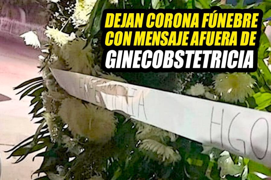 Dejan corona fúnebre con mensaje afuera del Hospital de Ginecobstetricia del IMSS